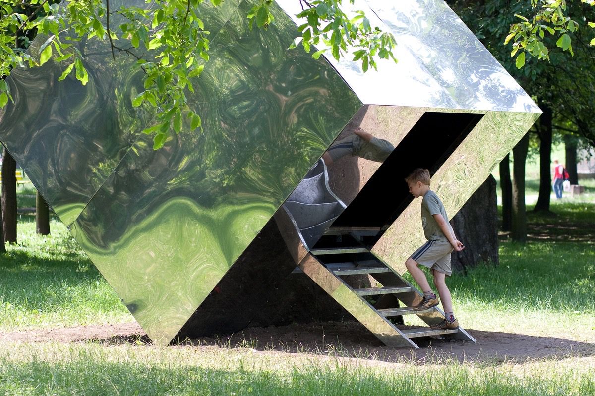 Гладкая зеркальная поверхность немного искажает окружающий наш мир, придаёт ему иную форму, позволяя взглянуть на привычную нам обыденность под другим углом.